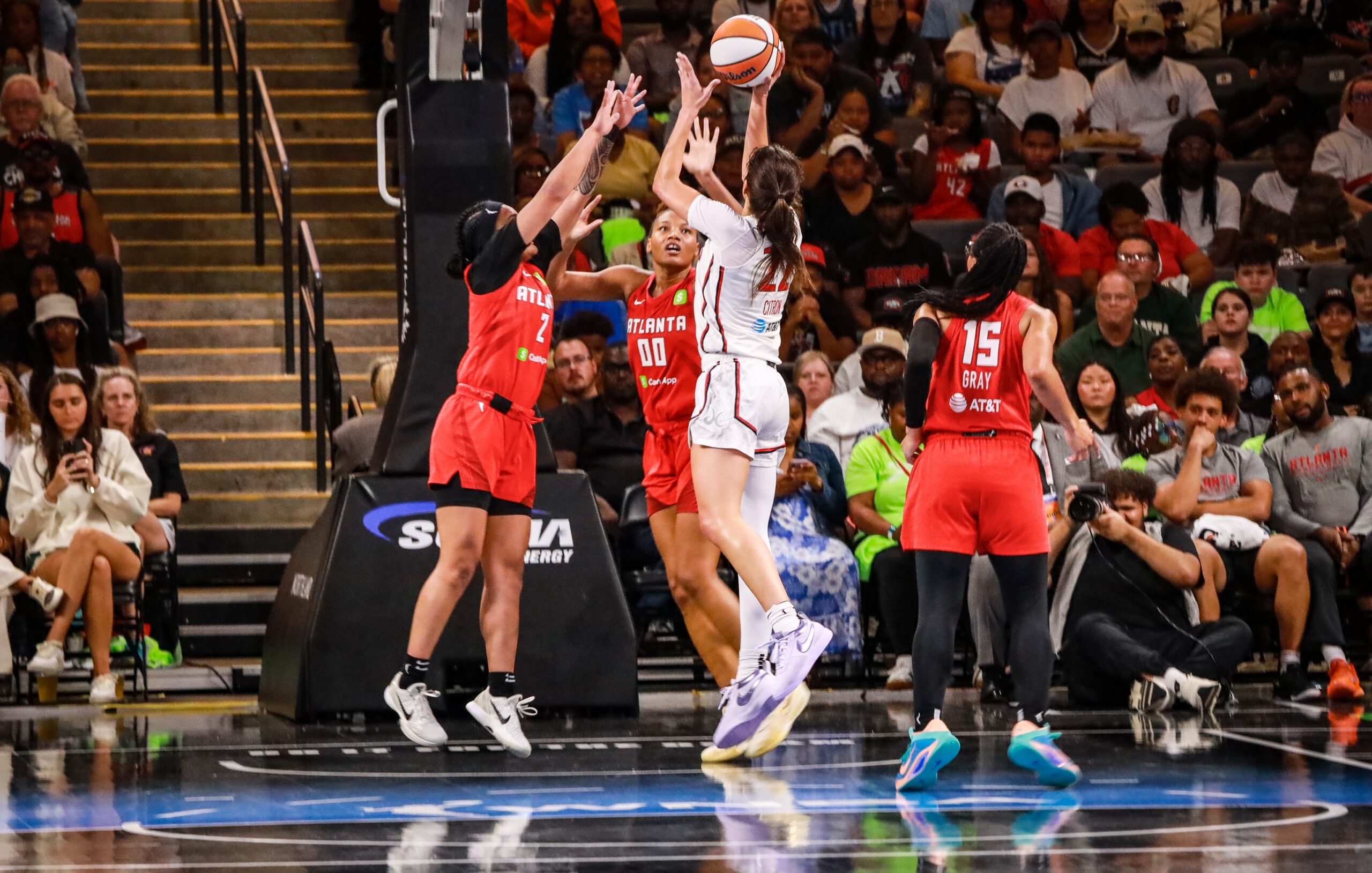 From there, the momentum stayed with Atlanta. The Dream shot 65% in the third quarter (13-of-20) and forced another string of turnovers, adding 10 more points off Washington’s mistakes. Brionna Jones scored 14 in the quarter alone as Atlanta stretched its lead to as much as 13, heading into the fourth up 71-60.