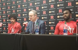 Piscataway, NJ--Rutgers sporting the retro uniforms and warm-ups the throwback to the 1970s, including RU's 1976 undefeated regular season and Final Four run.