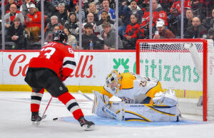 NEWARK, N.J. — Nico Hischier delivered in the clutch Thursday night, scoring just 42 seconds into overtime to lift the New Jersey Devils to...