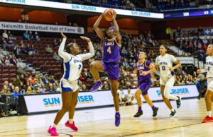 Uncasville, Conn. – No. 5 LSU dominated Seton Hall 91-64 in the Basketball Hall of Fame Women’s Showcase on Tuesday night, powered by standout...