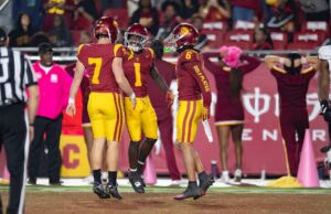LOS Angeles, LA— Woody Marks scored three touchdowns on the ground, Miller Moss added two touchdown passes and a rushing score, and Southern California...