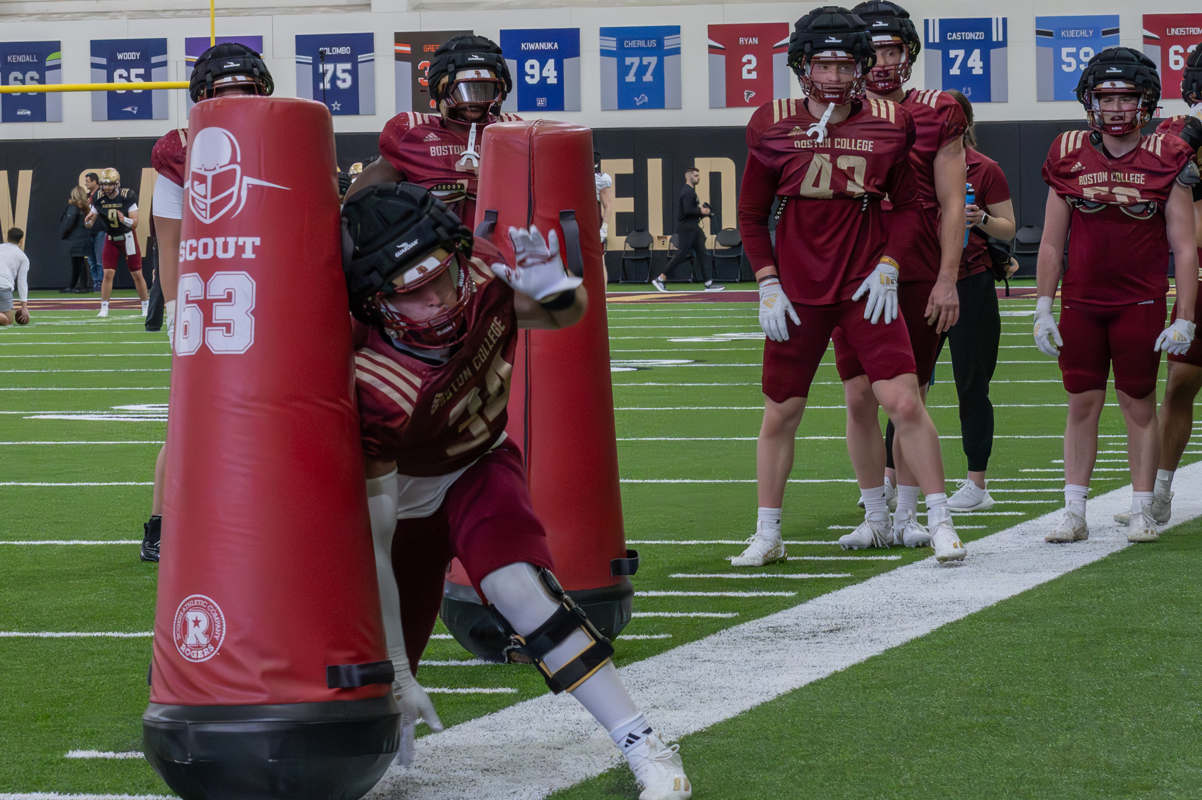 Chestnut Hill, Mass. – Under clear skies at Fish Field House, Boston College football held its third spring practice of the 2025 season on Saturday. This session marked a key milestone for the Eagles as they donned pads for the first time this spring.