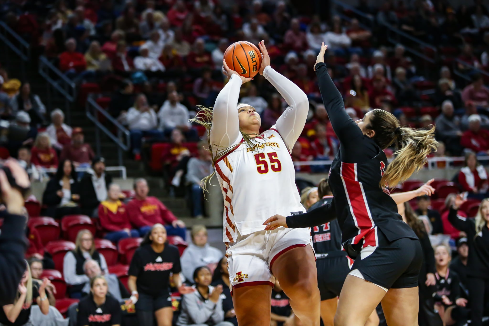 Crooks poured in 30 points in just 19 minutes, leading a trio of Cyclones in double figures. The nation’s leading scorer at 27.3 points per game, Crooks extended her active streak of consecutive double-digit scoring games to 77, the longest currently in Division I.