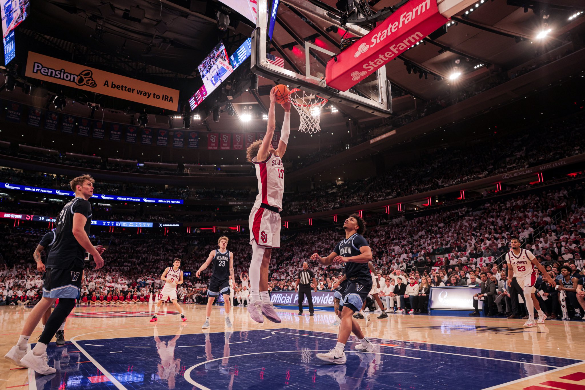 New York, NY — Behind a historic night from Zuby Ejiofor, No. 15 St. John’s Red Storm men’s basketball team overwhelmed the Villanova Wildcats men’s basketball team 89-57 on Saturday at Madison Square Garden, responding emphatically to a lopsided loss earlier in the week.