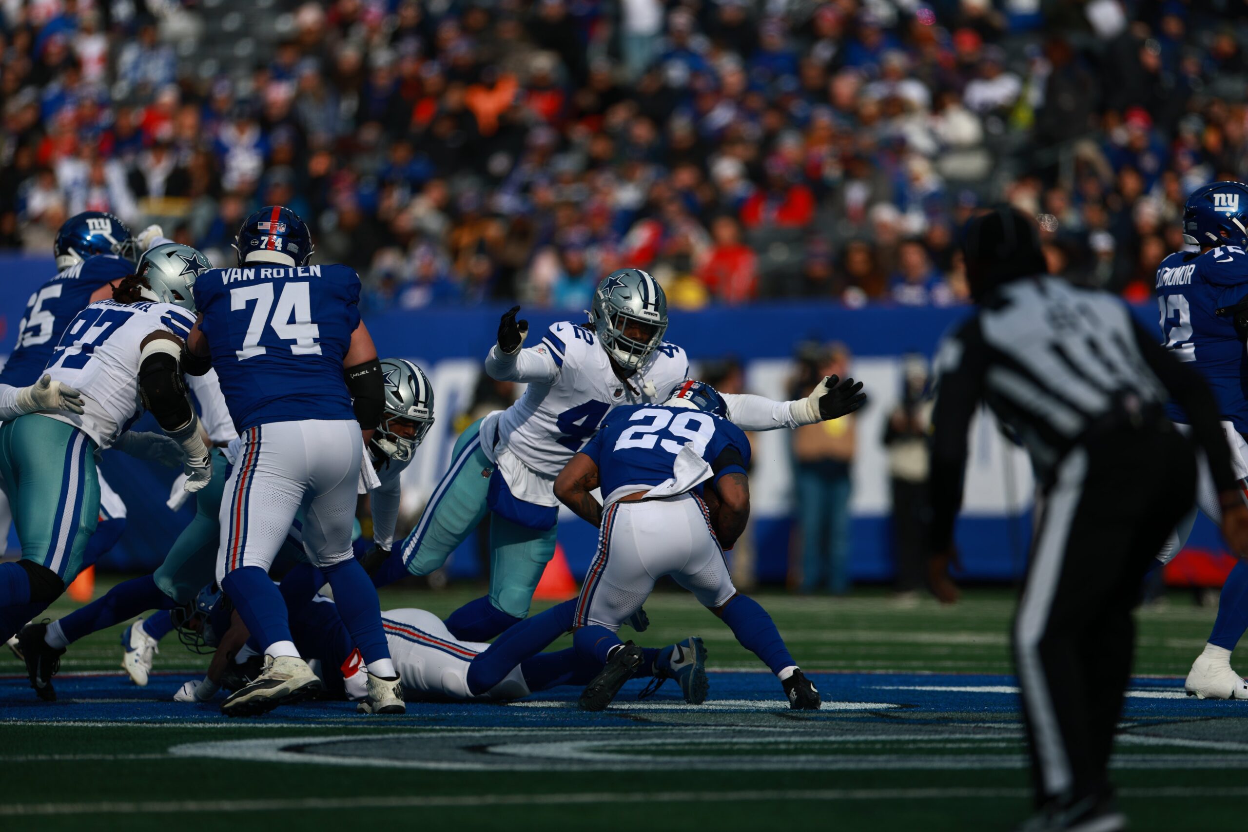The Cowboys fell to 7–9–1 and lost to New York for the first time since the 2020 season finale, snapping a nine-game losing streak in the rivalry. Prescott had previously won 14 straight starts against the Giants. Dallas again struggled defensively, allowing more than 30 points, adding to the scrutiny surrounding defensive coordinator Matt Eberflus.