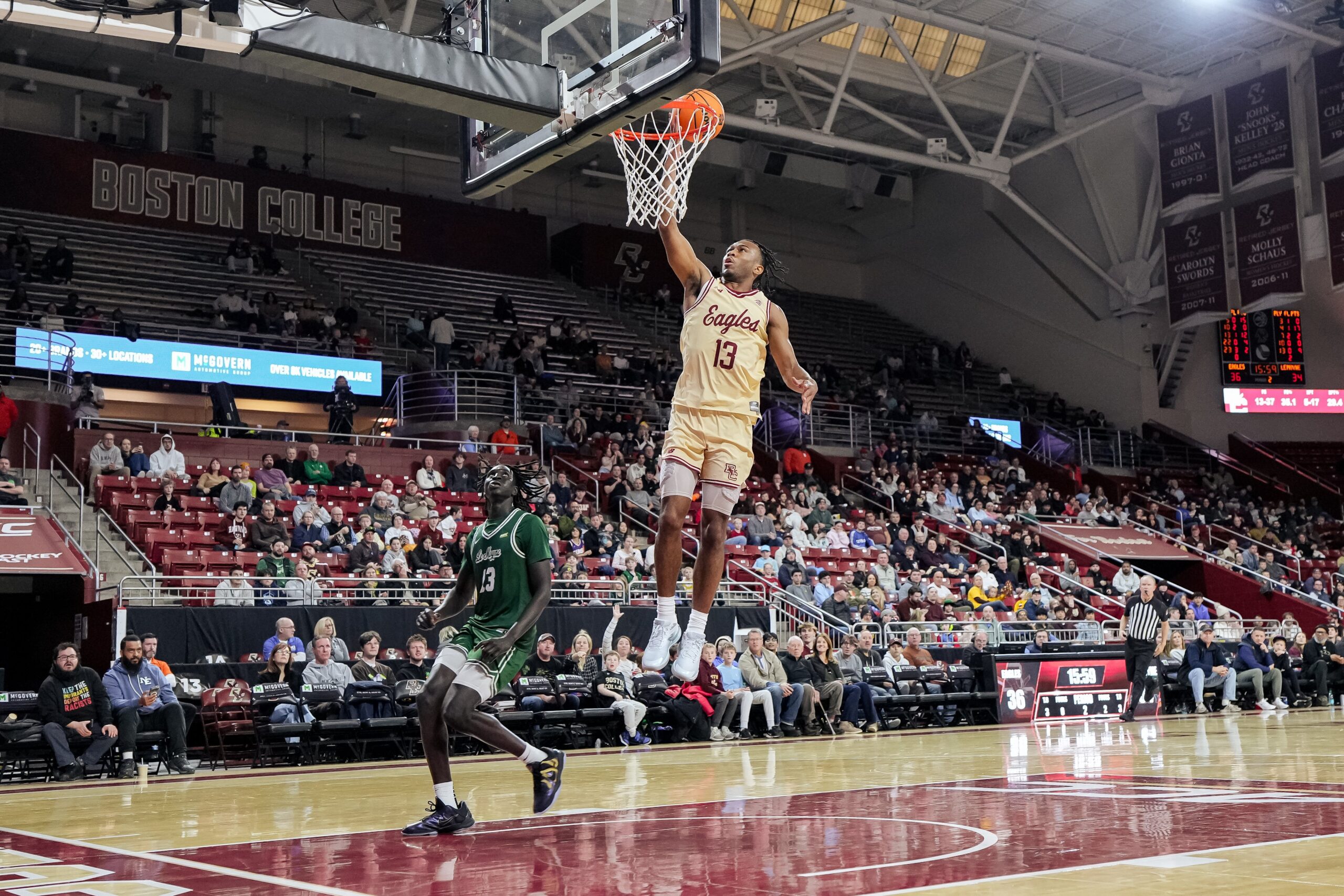 The opening half was tightly contested, featuring multiple lead changes and neither team able to build more than a two-possession cushion. A layup by Garang in the final minute trimmed Boston College’s lead to 30–29 at the break.