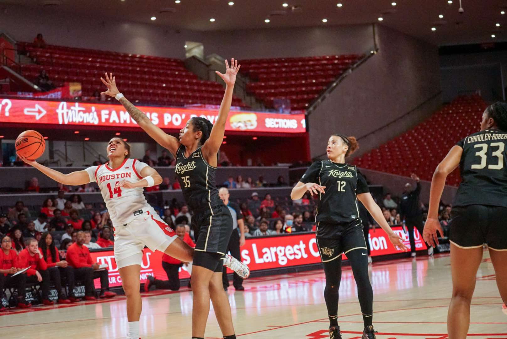 The Knights built their lead to 20 points in the fourth, but Houston fought back to trim the deficit to 10. However, the Cougars were unable to score from the field in the final two minutes, allowing UCF to close out the victory.