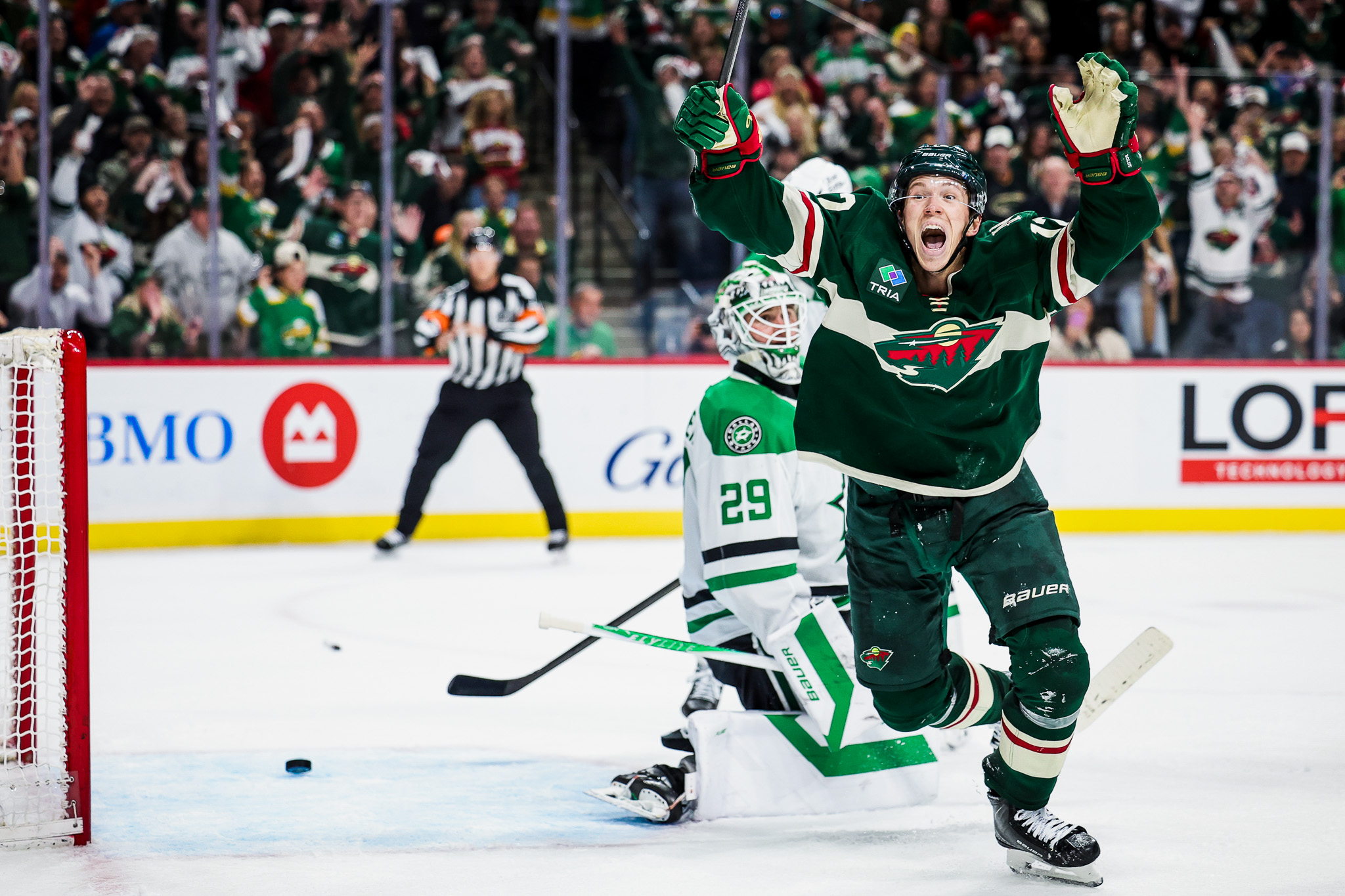 The decisive moment came when Jared Spurgeon fired a shot toward the net that Boldy redirected past goaltender Jake Oettinger. Left uncovered in front, Boldy used a subtle deflection to seal Minnesota’s first home overtime playoff win in more than a decade.