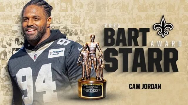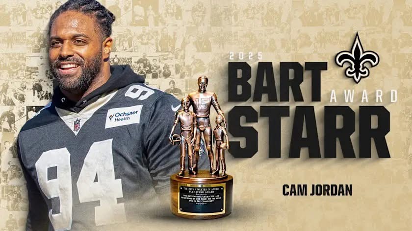 New Orleans, LA—-New Orleans Saints defensive end Cameron Jordan received the prestigious 2025 Bart Starr Award at the 38th Annual Super Bowl LIX Breakfast on Saturday morning. The event, held at a sold-out Ernest N. Morial Convention Center, brought together NFL greats, community leaders, and fans to celebrate character, leadership, and service.