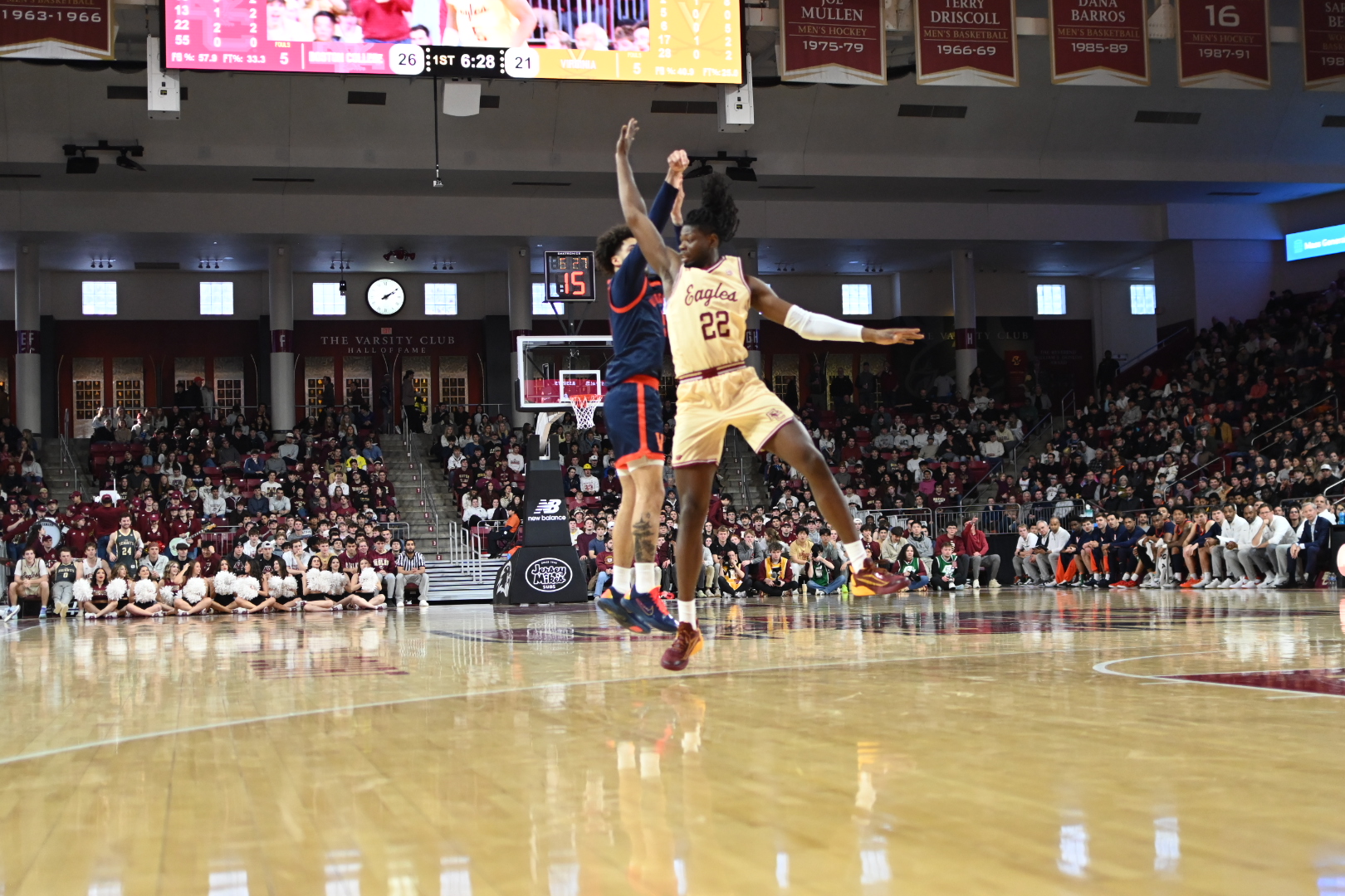 The Eagles stayed within two possessions until Ugonna Onyenson’s dunk extended Virginia’s cushion to 72-64 with under a minute to play, sealing the outcome.