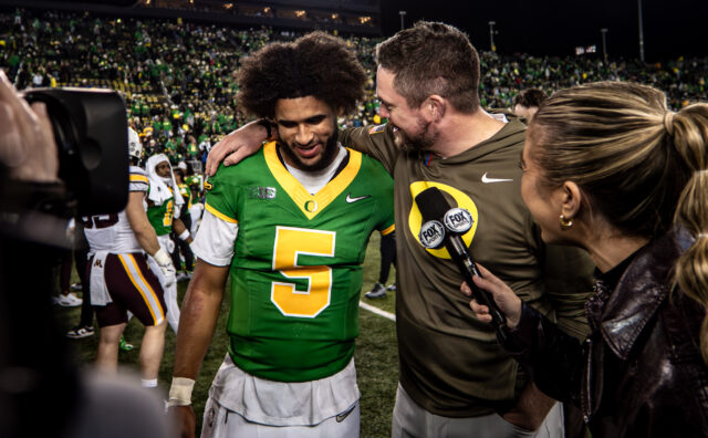 After grinding out a comeback win at Iowa in harsh conditions the previous week, Oregon cruised at home in mild weather. The convincing victory likely won’t dramatically impact the Ducks’ playoff ranking, but a major showdown looms next Saturday against USC, ranked No. 17 in both the AP Poll and CFP rankings.