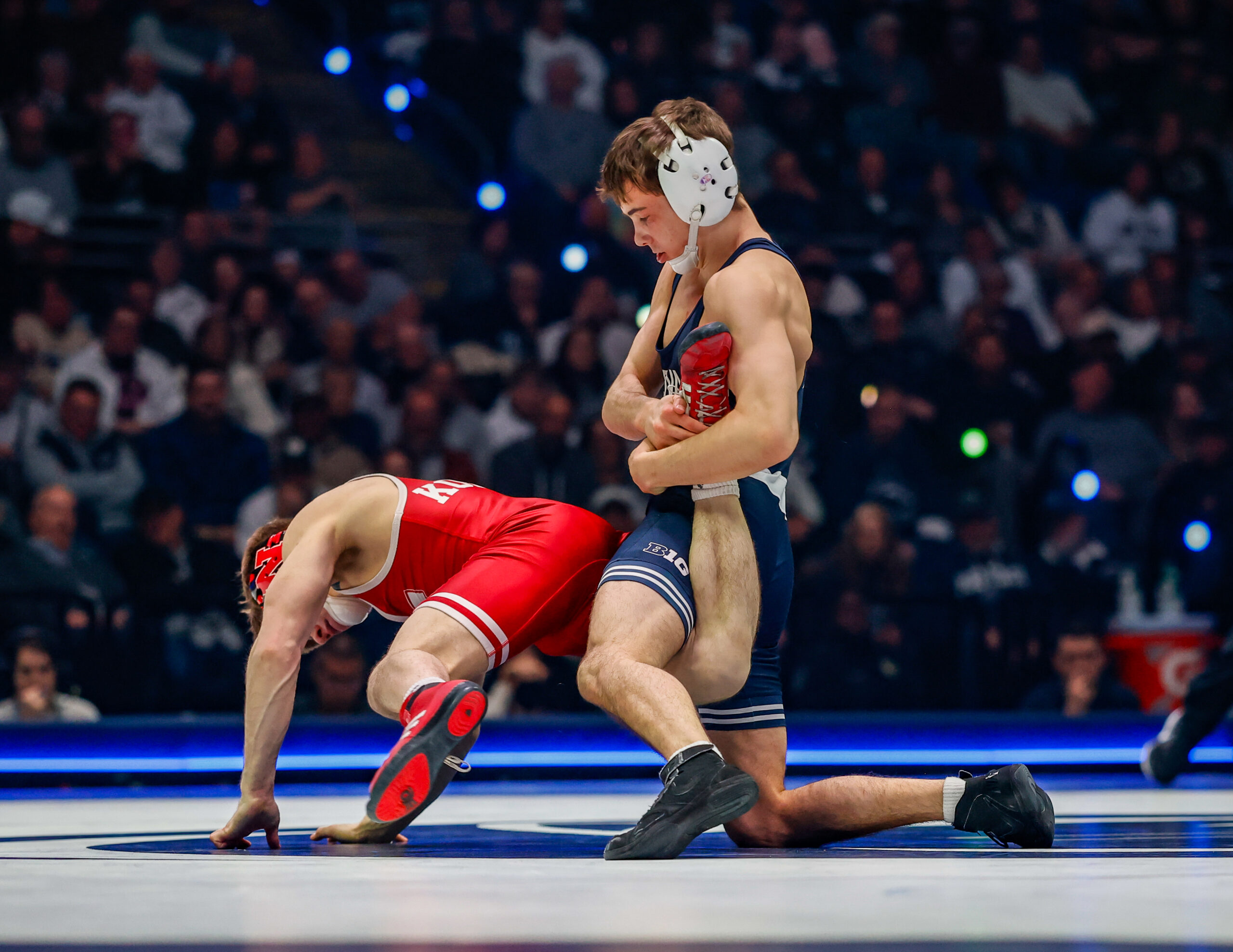 The sixth-ranked Cornhuskers matched the top-ranked Nittany Lions early inside the Bryce Jordan Center, trading wins and momentum and heading into intermission trailing by just one point. Nebraska scored nine team points in the opening half, more than Penn State had allowed in any dual all year.