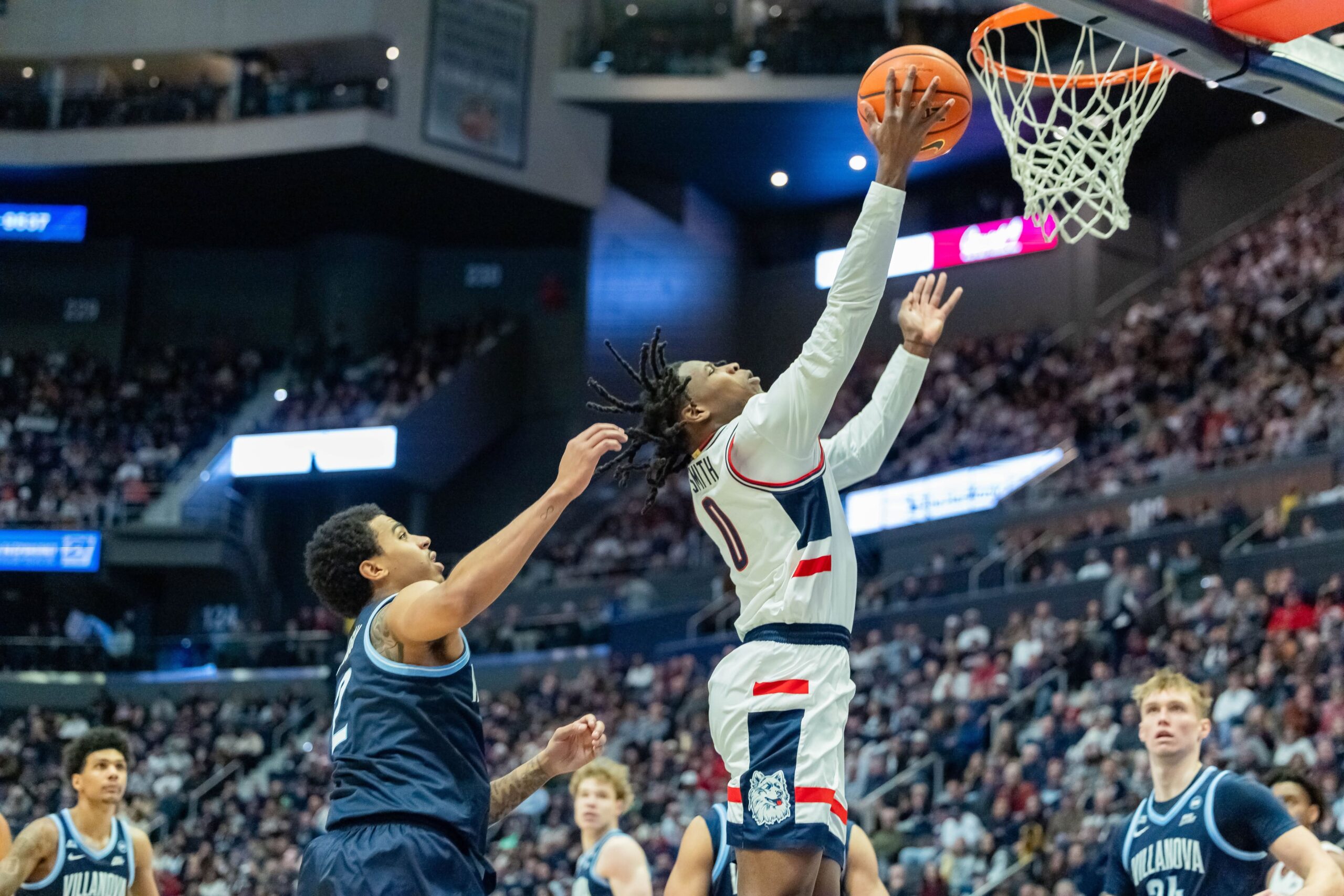 The game turned tense midway through the second half following a technical foul assessed to UConn head coach Dan Hurley. After a no-call on a Karaban drive, Villanova capitalized at the free-throw line, with Devin Askew converting the technical shots and Acaden Lewis adding two more to extend the Wildcats’ lead to 39–33.