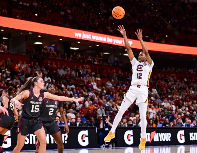 The top-seeded Gamecocks (29-3) took control early and never trailed against the No. 10 Sooners (25-7), who were playing their third game of the tournament. Oklahoma’s Sarah Williams led her team with 19 points, but South Carolina’s defense limited Reagen Beers to just seven points and eight rebounds.