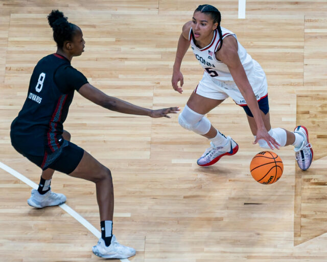 South Carolina controlled the glass (47-32) and capitalized in transition, outscoring UConn 16-9 on the fast break.
