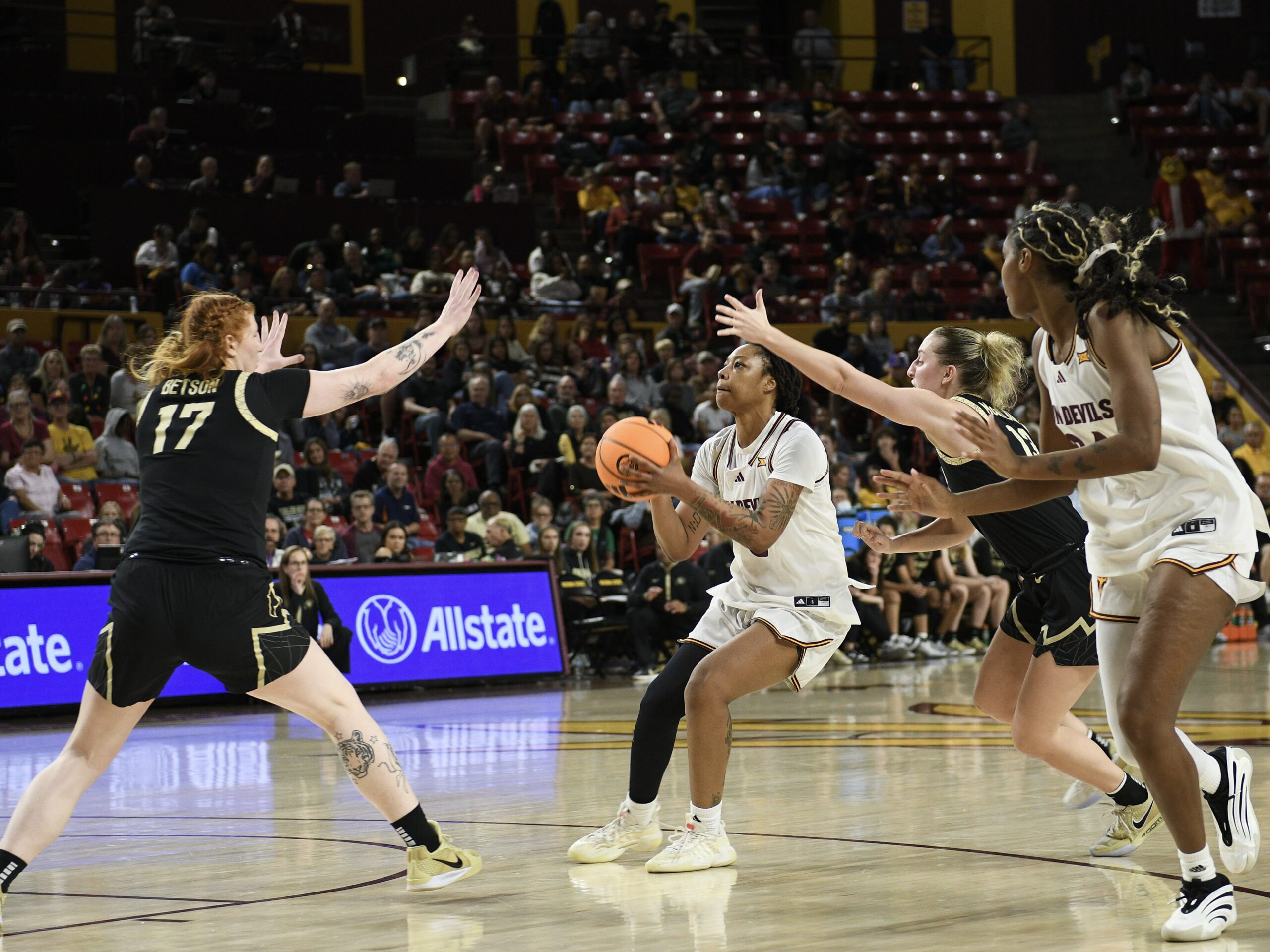 The unbeaten Sun Devils raced to a 17–2 advantage in the first 5:09, forcing Colorado to chase the game from the opening minutes. Arizona State’s pressure defense and blistering shooting set the tone, as the home team connected on nearly 60 percent of its attempts for the night and consistently put the Buffs on their heels.