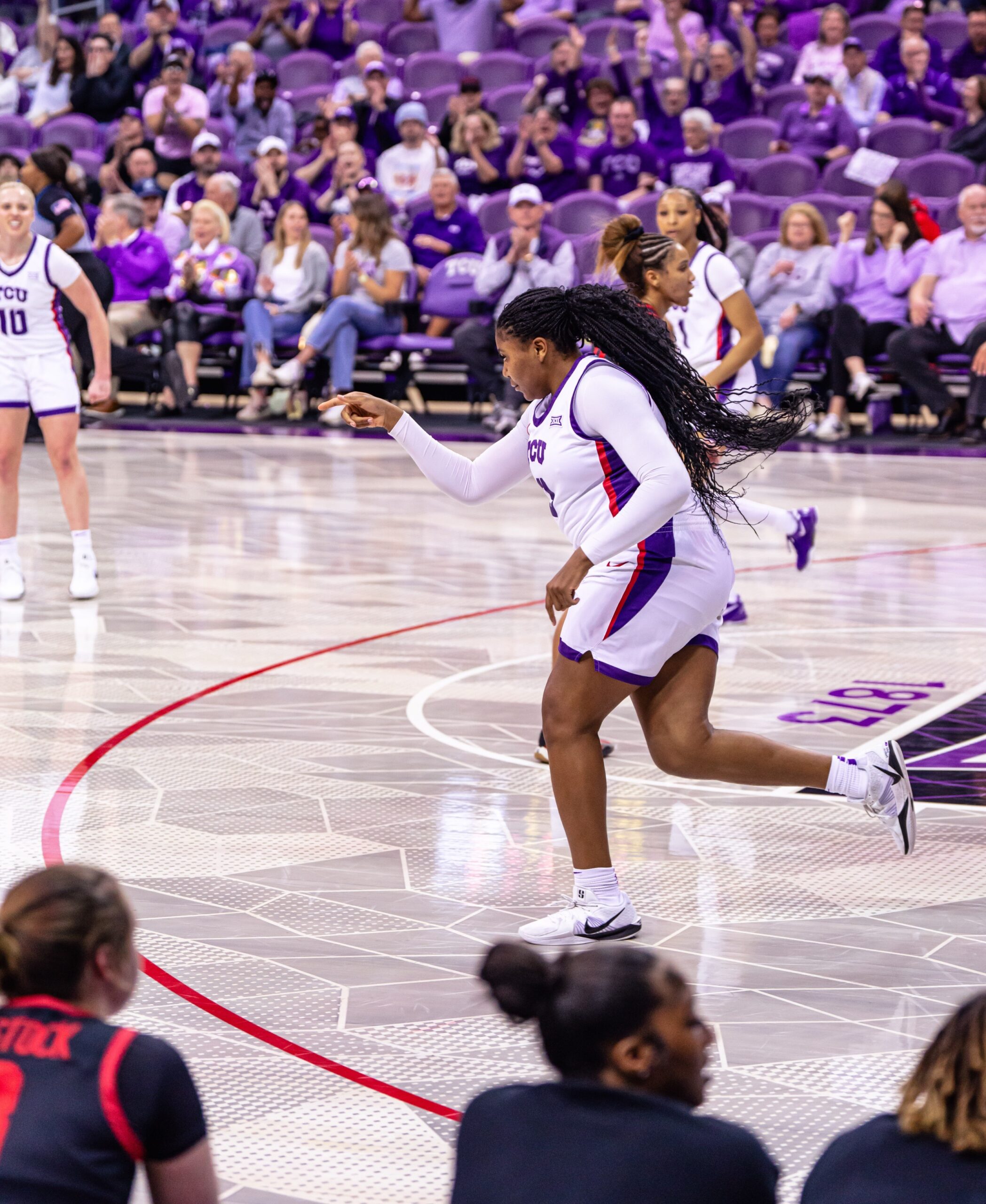 Fort Worth, TX—-In an emotional moment during their final home game, TCU had all five seniors on the floor before calling a timeout, allowing them to exit together to a standing ovation. The Horned Frogs capped off the night with a dominant 91-56 victory over Houston.