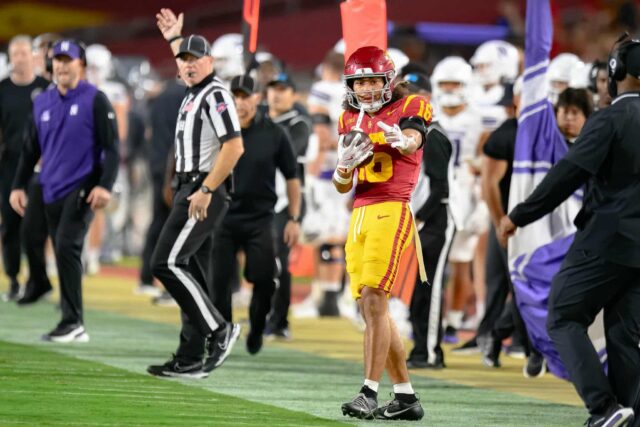 LOS ANGELES, CA — Under the bright lights of the Coliseum, Makai Lemon turned in the best performance of his career, piling up 161 receiving yards, a touchdown catch, and a scoring run as No. 20 USC cruised to a 38–17 win over Northwestern on Friday night.