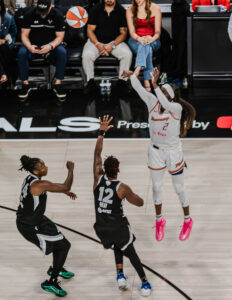 Phoenix kept things competitive early, but foul trouble and cold shooting doomed their chances. Kahleah Copper paced the Mercury with 21 points, while Satou Sabally added 12 points and five rebounds before exiting late in the fourth quarter with an apparent right ankle injury. Alyssa Thomas chipped in 10 points and six rebounds, but picked up her fourth foul midway through the third quarter, stalling the Mercury’s momentum.