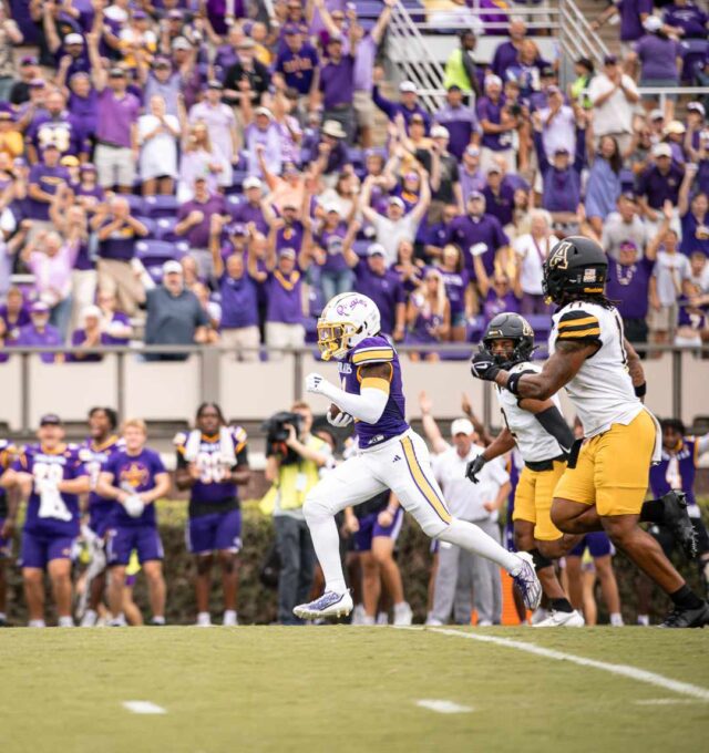 With 5:10 left in the game, a fumble by Kaedin Robinson after a 20-yard reception gave East Carolina possession deep in their own territory. Garcia connected with Yannick Smith for a 29-yard gain on the drive, but Seth Robertson intercepted Garcia’s next pass, allowing Appalachian State to regain control and run out the clock.