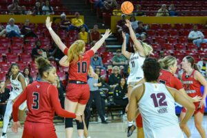 Senior guard Gabby Elliott once again led by example, scoring 15 points on an efficient 7-for-11 shooting night while adding two blocks and surpassing 1,000 career points in the process. After a stellar opener that included 16 points and seven steals, Elliott continued to shine as one of ASU’s most reliable two-way players.