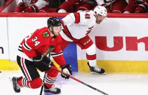 Chicago, ILL---The Blackhawks were able to score three goals early due to power play in the first period. Chicago beat Carolina 6-4 Thursday night...