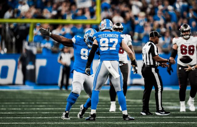 Defensive standout Aidan Hutchinson was a force for Detroit, recording five sacks, including three in the first quarter alone.