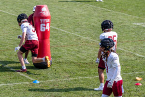 The defense continues to impress with its speed and physicality, while both lines have had strong moments. The quarterback battle remains highly competitive, elevating play across all offensive units — especially the tight ends.