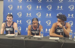 Newark, N.J. — Playing in front of a crowd of 9,699 at the Prudential Center, No. 3 UConn withstood a furious late rally from...