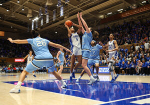 Though Duke never trailed in the second half, the Tar Heels kept it tight. The margin shrank to 56-54 late in the third quarter, but North Carolina couldn’t break through.