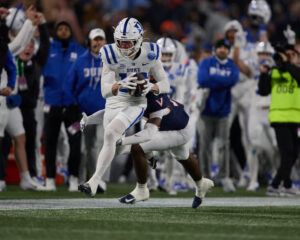 On Virginia’s first snap, Chandler Morris tried a deep throwback play but was intercepted by Luke Mergott, triggering a wave of celebration on Duke’s sideline.