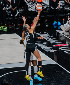 Las Vegas, NV—–Despite a controversial late-game foul that was overturned after a challenge by head coach Stephanie White, Aliyah Boston fouled out with 27 seconds remaining in regulation. The third-year forward still managed to notch her fourth straight—and sixth career—playoff double-double, finishing with 11 points and 16 rebounds in just her tenth postseason appearance.