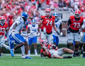 Georgia’s dominance up front was evident again, even after losing starting left tackle Monroe Freeling to a leg injury. Running back Chauncey Bowens led the ground attack with 70 yards, as the Bulldogs piled up 180 rushing yards in total. Defensively, Georgia limited Kentucky to just 45 yards on the ground and forced their first fumble recovery of the season.