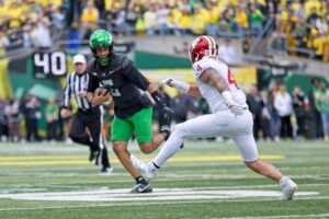 Roman Hemby added two rushing scores, and Indiana’s defense came up clutch with six sacks and two interceptions to silence a raucous Autzen Stadium crowd. The victory marked the Hoosiers’ first over a top-five opponent since they beat No. 3 Purdue in 1967 — a span of nearly 60 years.