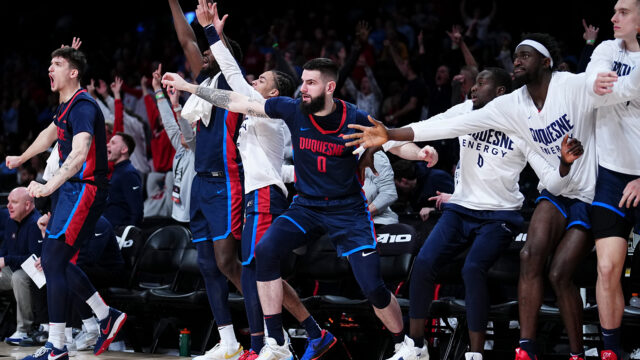 Barclays Center—-Jimmy Clark III led the charge with 16 points as Duquesne secured a hard-fought 65-57 victory over No. 24 Dayton in the Atlantic 10 Tournament quarterfinals on Thursday night.