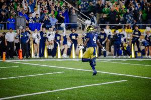 Notre Dame’s Jeremiyah Love rushes for a 12-yard touchdown. Photo Credit: Michael Sanders