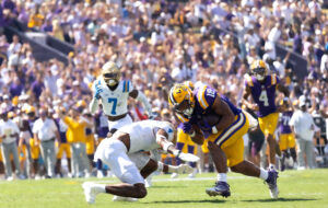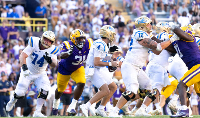 LSU’s defense made a crucial play late in the first half when defensive end Bradyn Swinson, coming off a three-sack performance the previous week, notched two more sacks. One forced a fumble deep in UCLA territory, leading to an LSU field goal that put the Tigers up 17-10.