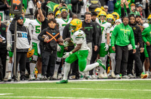 With Oregon (11-1, 8-1 Big Ten, No. 6 CFP) clinging to a five-point lead, Benson caught a pass from Dante Moore near midfield, sliced between two defenders, and sprinted untouched to the end zone with 7:55 left. The play halted Washington’s momentum after the Huskies had trimmed the deficit to 19-14 on a 13-yard touchdown pass from Demond Williams Jr. to Denzel Boston moments earlier.