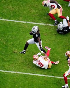 On his next series, Jeanty took a handoff and ran over 49ers cornerback Deommodore Lenoir, turning the run into a 13-yard gain. He capped it off with a powerful 1-yard touchdown run to give the Raiders a brief lead.