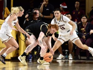 The unbeaten Sun Devils raced to a 17–2 advantage in the first 5:09, forcing Colorado to chase the game from the opening minutes. Arizona State’s pressure defense and blistering shooting set the tone, as the home team connected on nearly 60 percent of its attempts for the night and consistently put the Buffs on their heels.