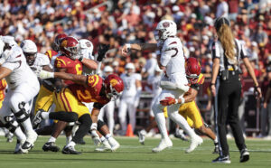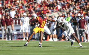USC’s defense also got in on the action. Safety Bishop Fitzgerald, a transfer from NC State, returned an interception 39 yards for a touchdown early in the second quarter. “We wanted to set the tone early, and I think we did that,” Fitzgerald said.